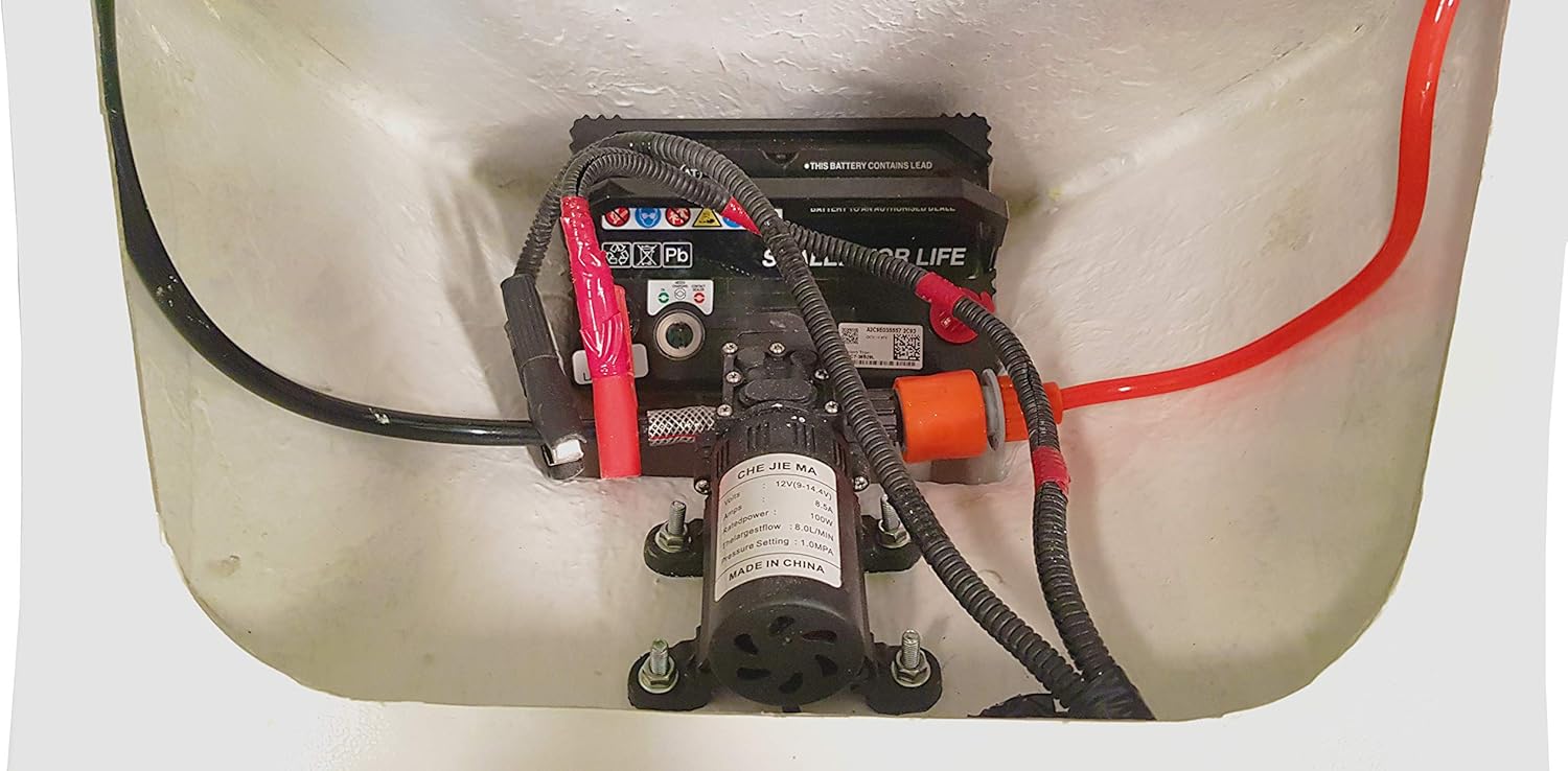 Made from fiberglass material, and contain two tanks with total capacity of 60 liters. It is equipped with electrical pump, spray gun, 10 meter hose and battery
